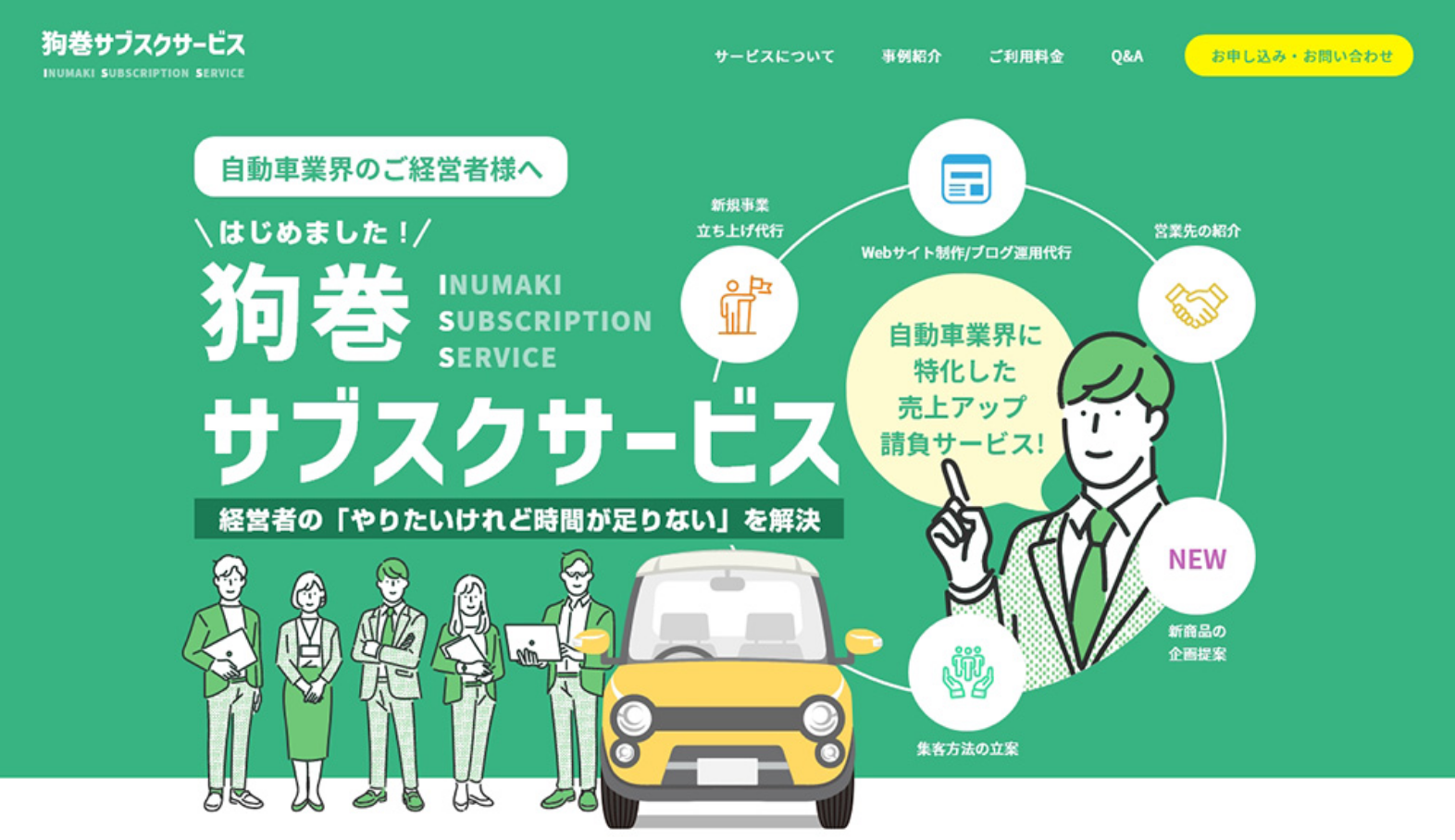 販促・集客・新規事業創出・業務効率化など、ディーラー様が抱える様々なお悩みをまとめて引き受ける、サブスクリプション(定額制)の請負サービスです。
